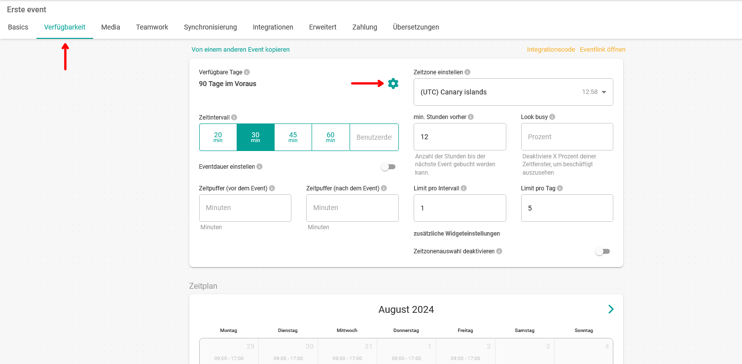 Dadurch gelangst du zu den Verfügbarkeitseinstellungen.